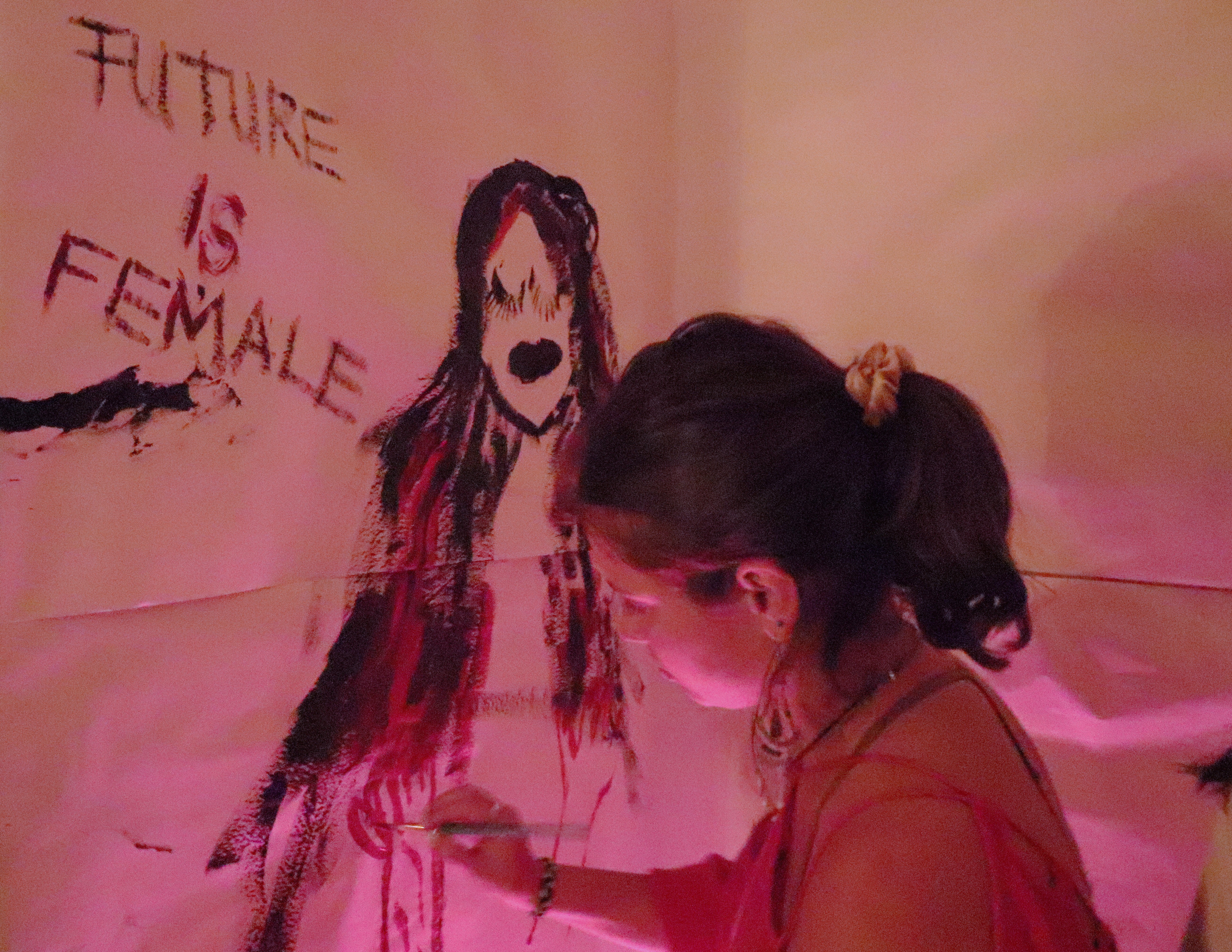 The transition from dialogue on sexual assault and violence to dancing and mark-making would be a extreme transition to emotionally move from those states in such a condensed time. I created the role of an “listener” for whoever felt called to offer support to continue holding space for those women. The people who would want to take on this role, and be a listener/ empathizer/continue holding space could take on of the red heart pins and wear it, so if at any point, someone needed someone to talk to, they had someone.
